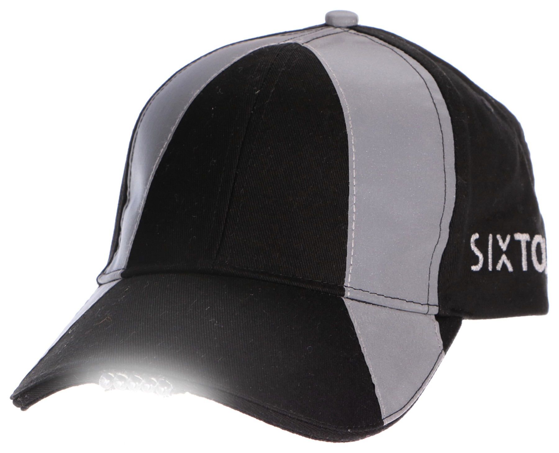Odblaskowa czapka z daszkiem z latarką LED B-CAP SAFETY 25lm, ładowana przez USB, uniwersalny rozmiar, czarna SIXTOL