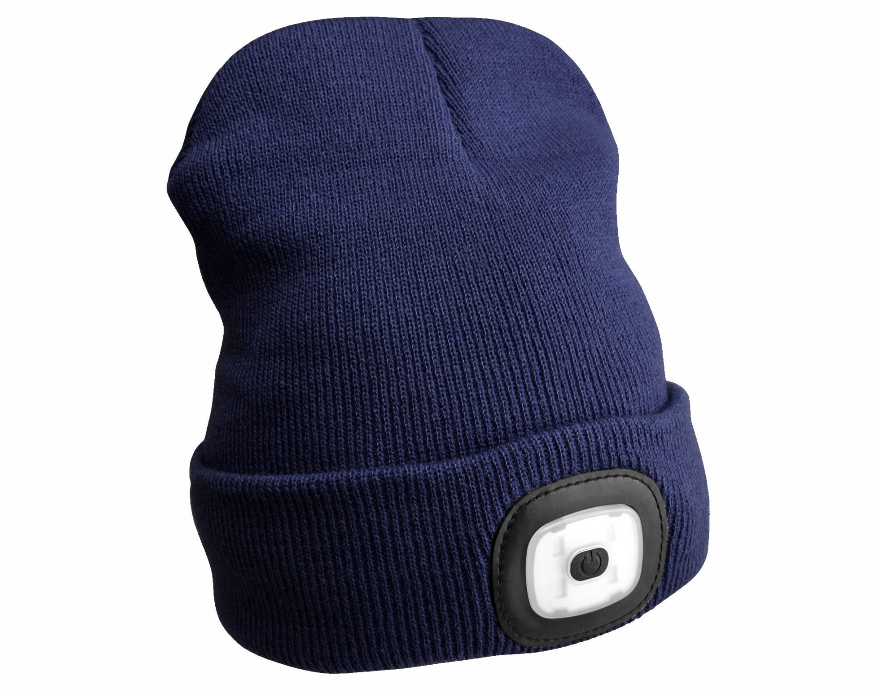 Czapka beanie z latarką czołową 180 lm, ładowana przez USB, uniwersalny rozmiar, bawełna/PE, niebieska SIXTOL