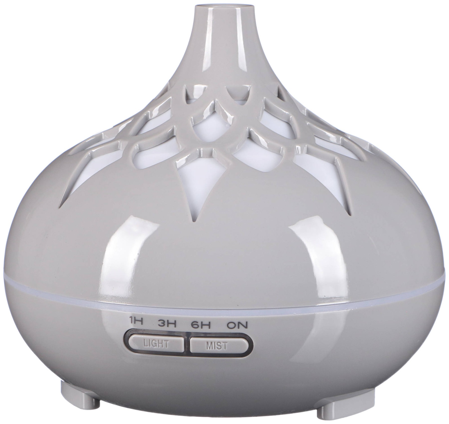 - Naciśnij przycisk "MIST", aby wybrać czas pracy dyfuzora (1H, 3H, 6H, ciągłe włączenie). Przytrzymaj przycisk "MIST" dłużej, aby dostosować intensywność mgły. Dyfuzor zawsze zaczyna od ustawienia o niższej intensywności.