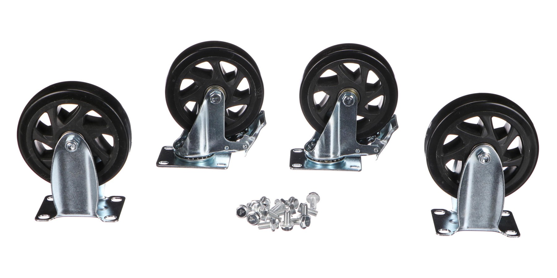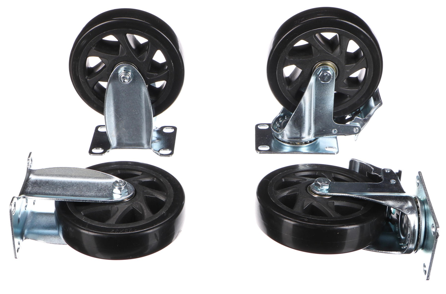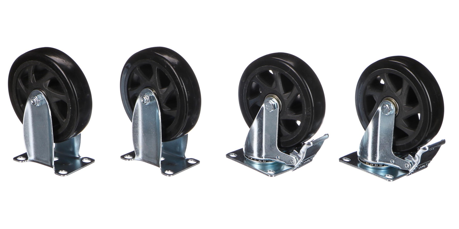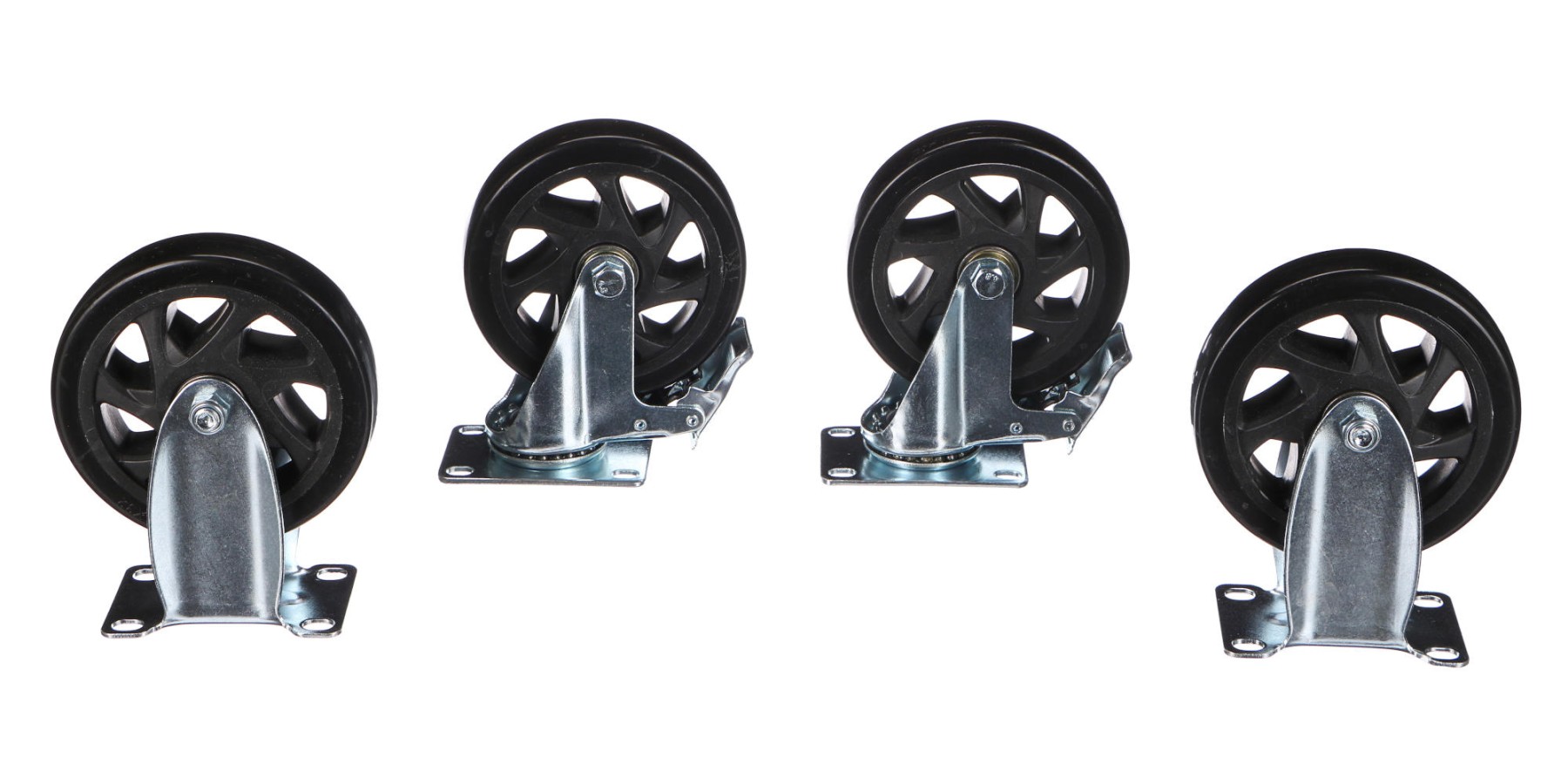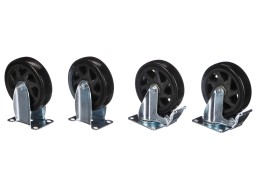 Główne zalety:- Zestaw zawiera koła stałe i obrotowe – świetne połączenie stabilności i manewrowości
