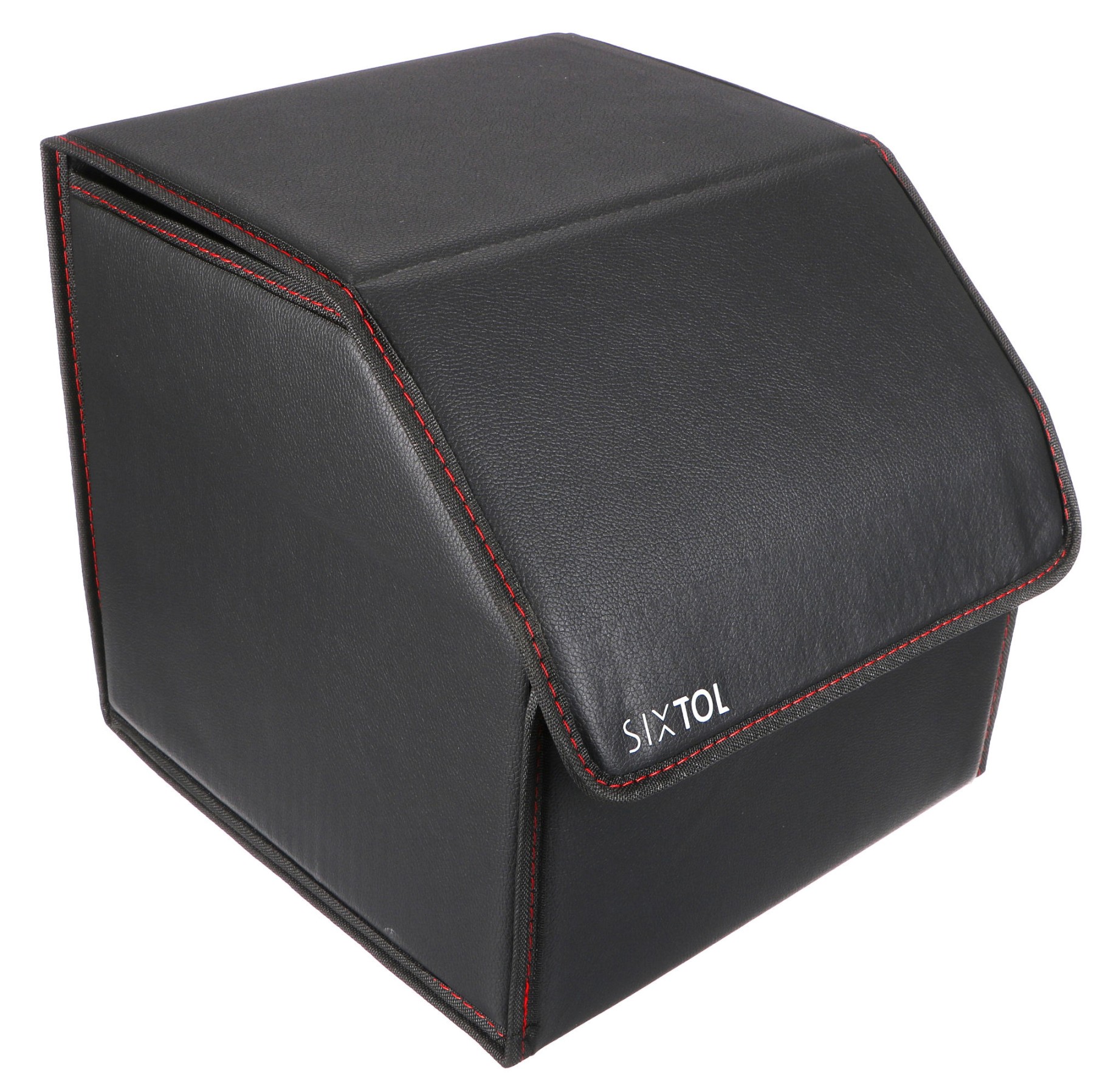 Elegancki organizator CAR COMPACT LEATHER w rozmiarze S z jedną przestronną przegrodą jest idealny do utrzymania porządku w Twoim pojeździe. Czysto czarny skórzany design z delikatnym białym logo SIXTOL na przedniej stronie pokrywy nadaje organizatorowi wyrafinowany wygląd. Rzep na spodniej stronie zapobiega przesuwaniu się po bagażniku, a pokrywa na rzep chroni zawartość i umożliwia bezpieczne przenoszenie. Organizator można łatwo rozłożyć i schować, gdy nie jest potrzebny. Powierzchnia z wysokiej jakości skóry syntetycznej jest trwała i łatwa do czyszczenia.