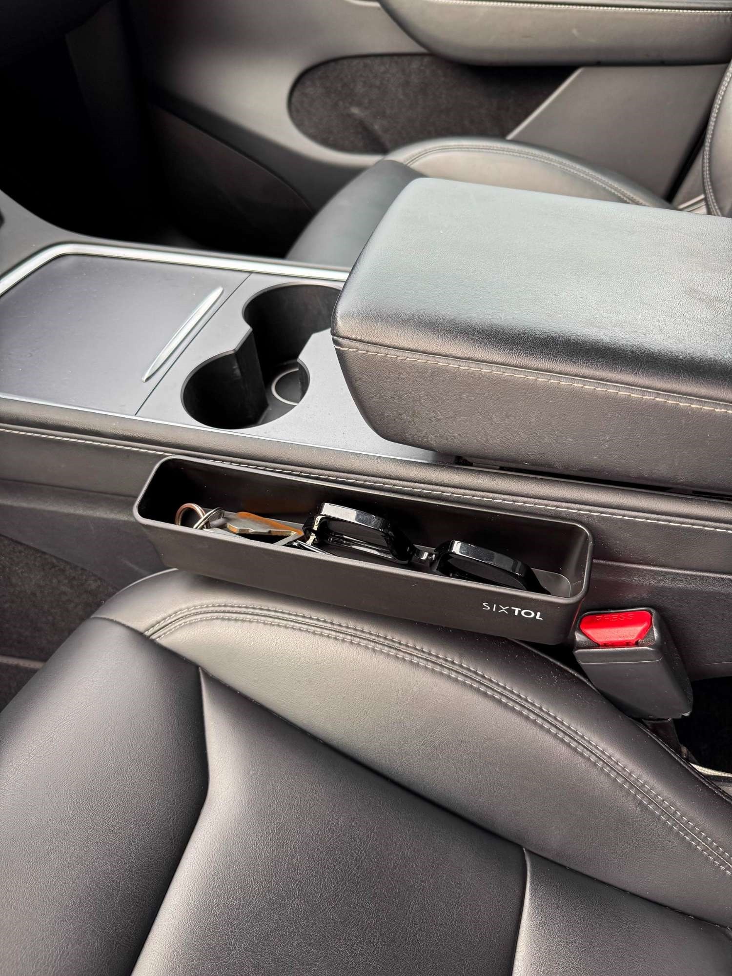 Niezawodny organizer CAR STORAGE 4 pomoże utrzymać wnętrze samochodu przejrzyste i uporządkowane. Wsuwa się w szczelinę między fotelem a konsolą środkową, wykorzystując w ten sposób inaczej nieużywaną przestrzeń. Zapewnia idealne miejsce do przechowywania telefonu, portfela, kluczy, okularów i innych drobiazgów, które będą zawsze pod ręką. Dzięki smukłemu kształtowi i dyskretnemu wzornictwu nie zajmuje dużo miejsca i doskonale pasuje do większości samochodów. Jest idealnym dodatkiem dla wszystkich, którzy cenią porządek i prostotę.