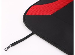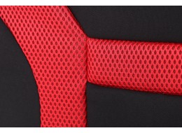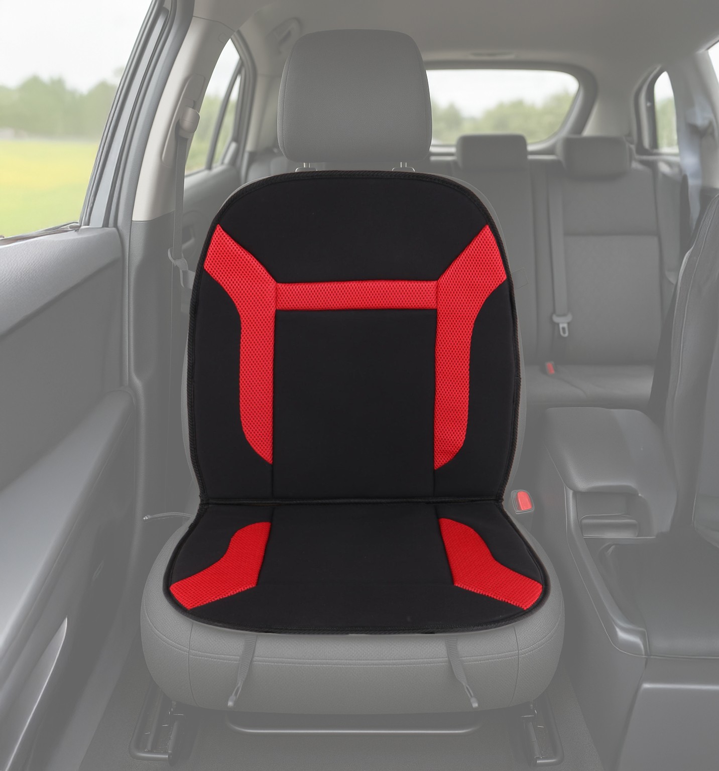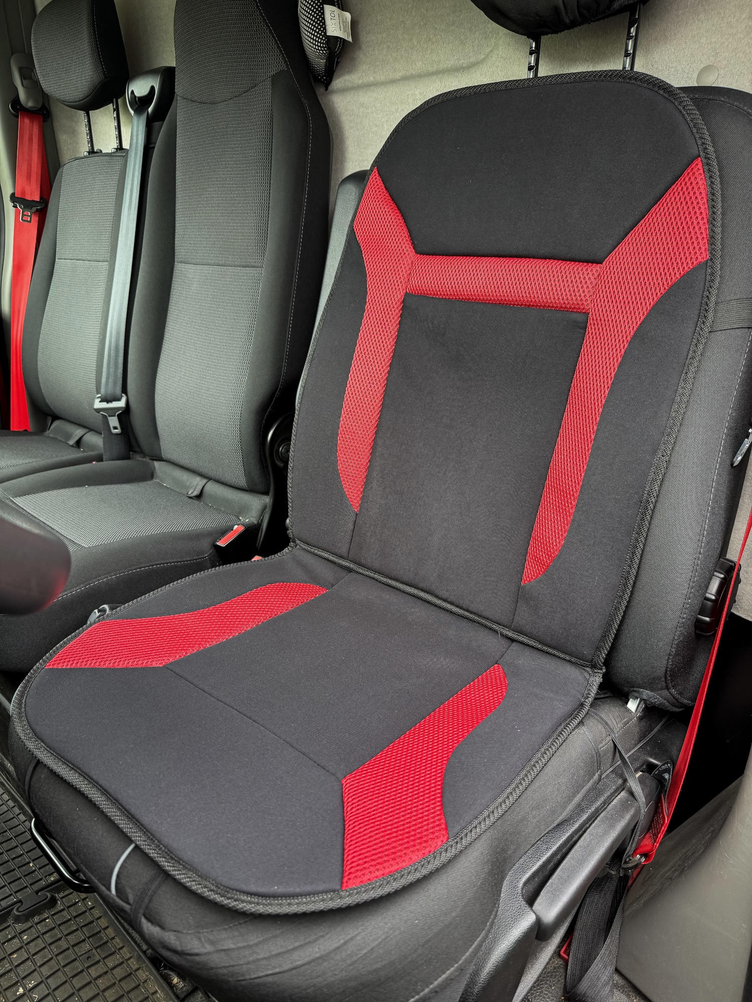 Pokrowiec na fotel samochodowy SIXTOL 3 to stylowy i praktyczny dodatek do Twojego pojazdu, który chroni oryginalną tapicerkę przed zużyciem i zwiększa komfort jazdy. Połączenie czerni i czerwieni z wyrazistym, sportowym designem nadaje wnętrzu nowoczesny wygląd. Powierzchnia wykonana jest z przyjemnej i oddychającej siateczki w połączeniu z kolorowym panelem tekstylnym typu „sandwich”. Wewnątrz znajduje się pianka o grubości 1 cm i gęstości 20D, zapewniająca miękkie siedzisko. Spód wyposażony jest w antypoślizgową gumową podkładkę i czarną włókninę dla lepszej stabilności. Mocowanie odbywa się za pomocą elastycznych pasków i haczyków, co umożliwia szybki montaż i demontaż. Pokrowiec pasuje do większości popularnych typów przednich foteli.