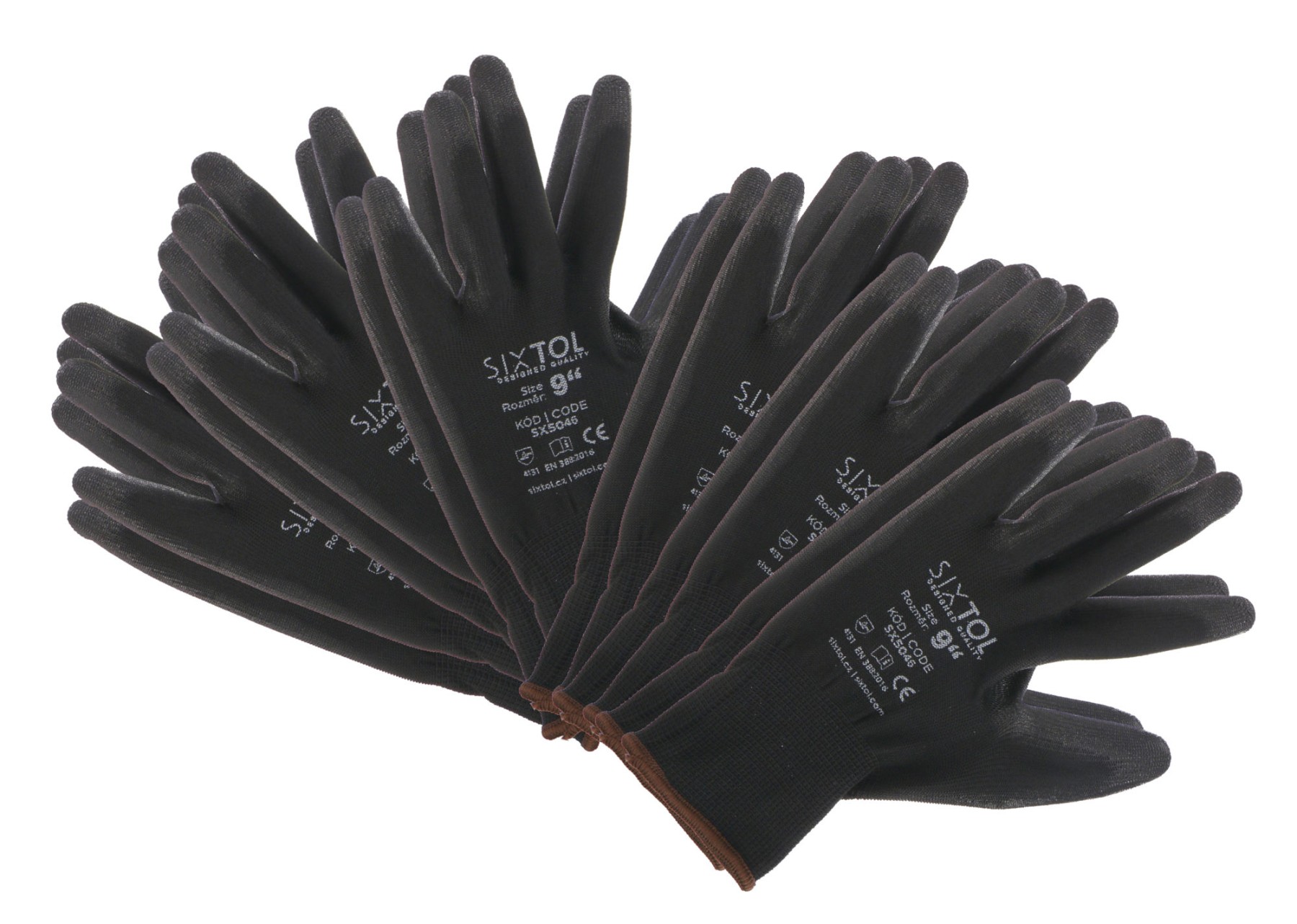 Rękawice robocze z poliestru częściowo powlekane poliuretanem SIXTOL GLOVE PE-PU 9, czarne, rozmiar 9", 6 par SIXTOL