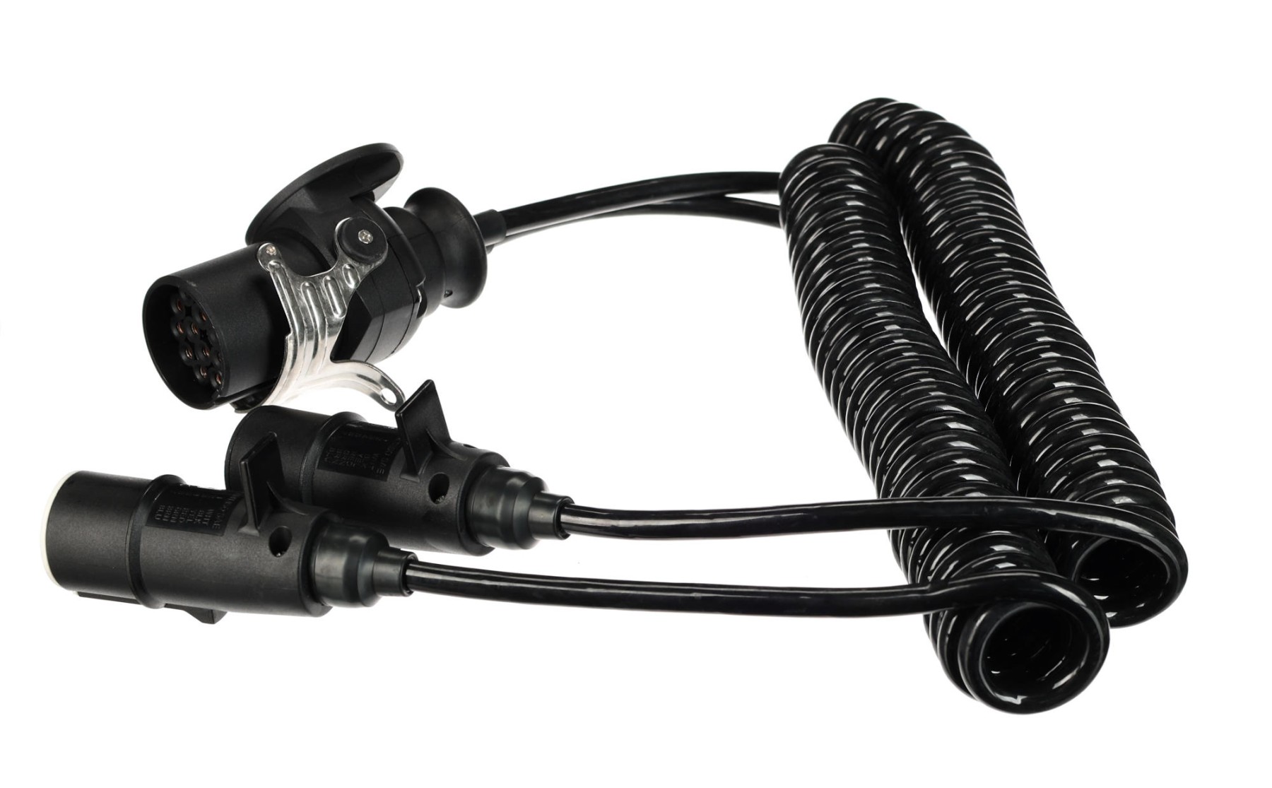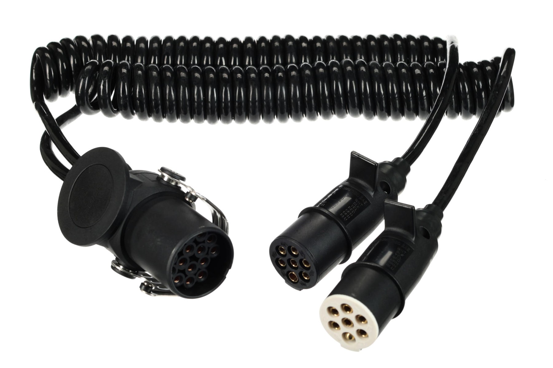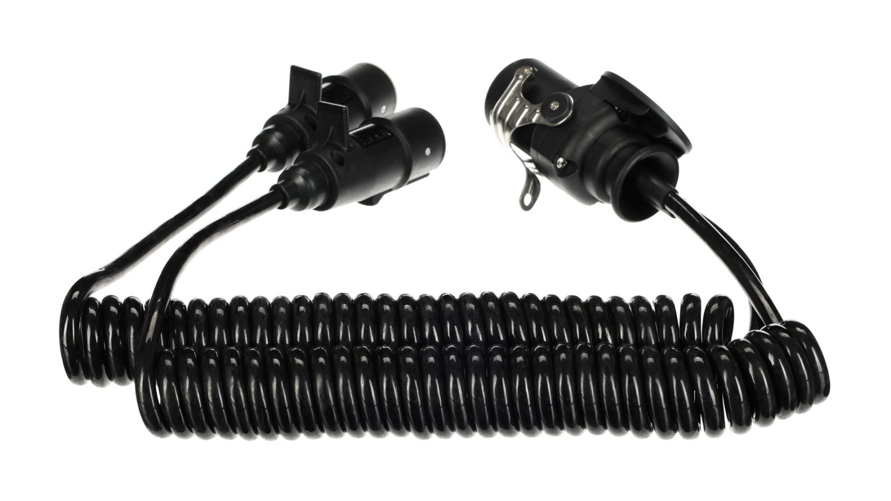 Spiralny adapter połączeniowy SIXTOL TRAILER CABLE 9 umożliwia łatwe i niezawodne połączenie między 15-pinowym gniazdem a dwiema 7-pinowymi wtyczkami (S+N) w pojazdach ciężarowych i przyczepach. Adapter przeznaczony jest do systemów 24V i zapewnia przesył wszystkich niezbędnych funkcji świetlnych oraz innych funkcji elektrycznych. Spiralna konstrukcja kabla zapewnia elastyczność podczas manipulacji, ogranicza zwisanie i pomaga chronić kabel przed uszkodzeniem podczas eksploatacji. Złącza zostały zaprojektowane tak, by zapewniać mocne połączenie i stabilny kontakt, co jest szczególnie istotne przy częstym podłączaniu i odłączaniu. Elementy ochronne złączy przyczyniają się do ochrony przed zabrudzeniami i wilgocią, dzięki czemu zwiększają niezawodność i żywotność adaptera.
