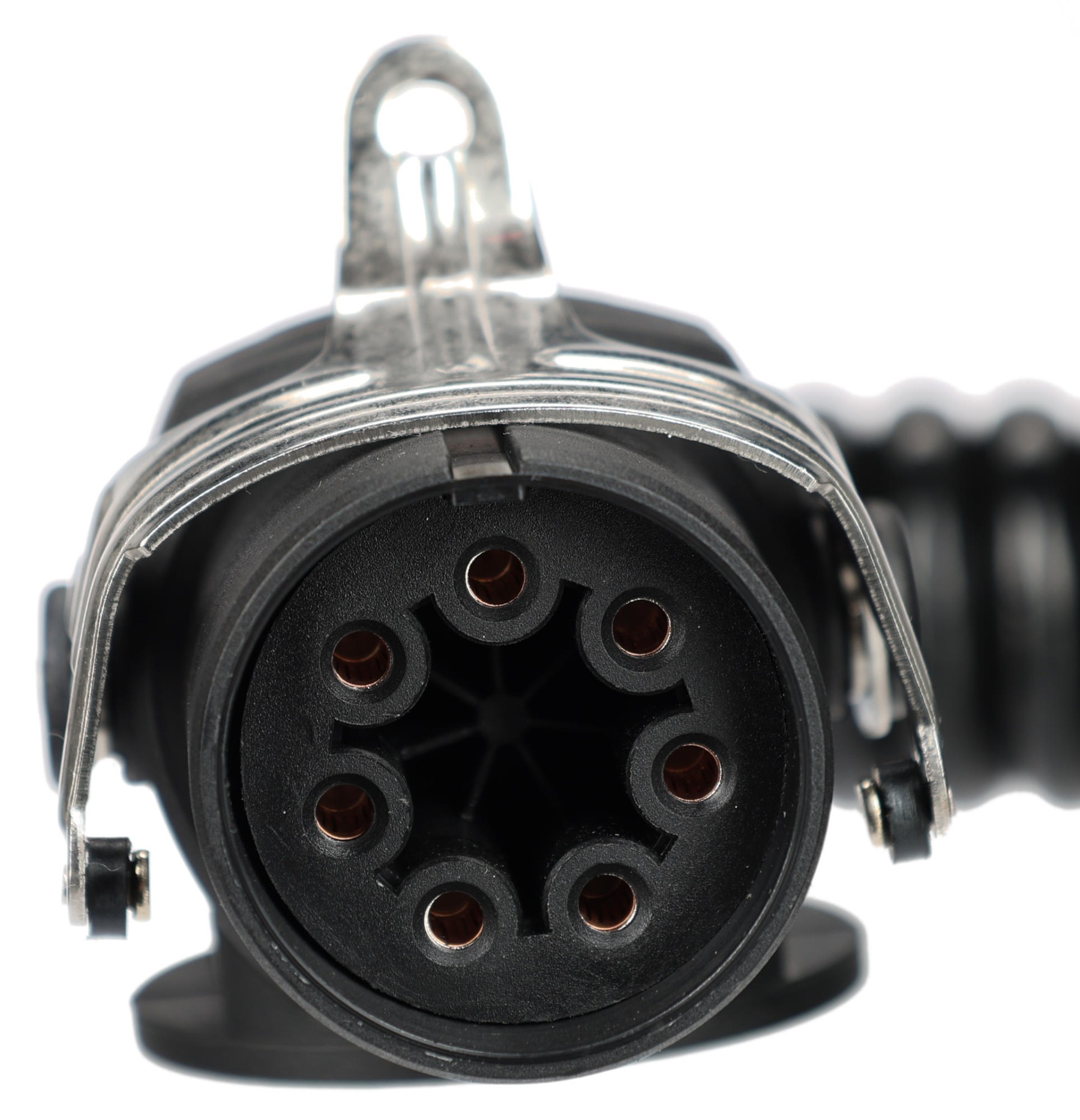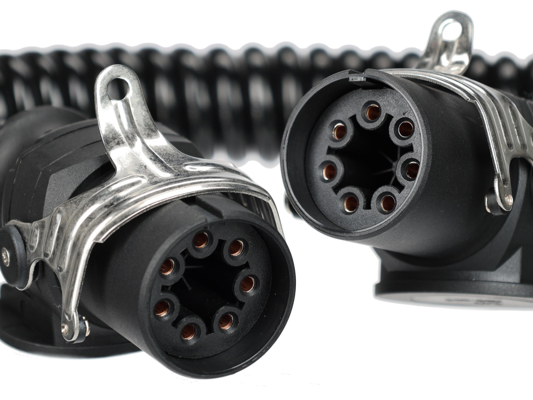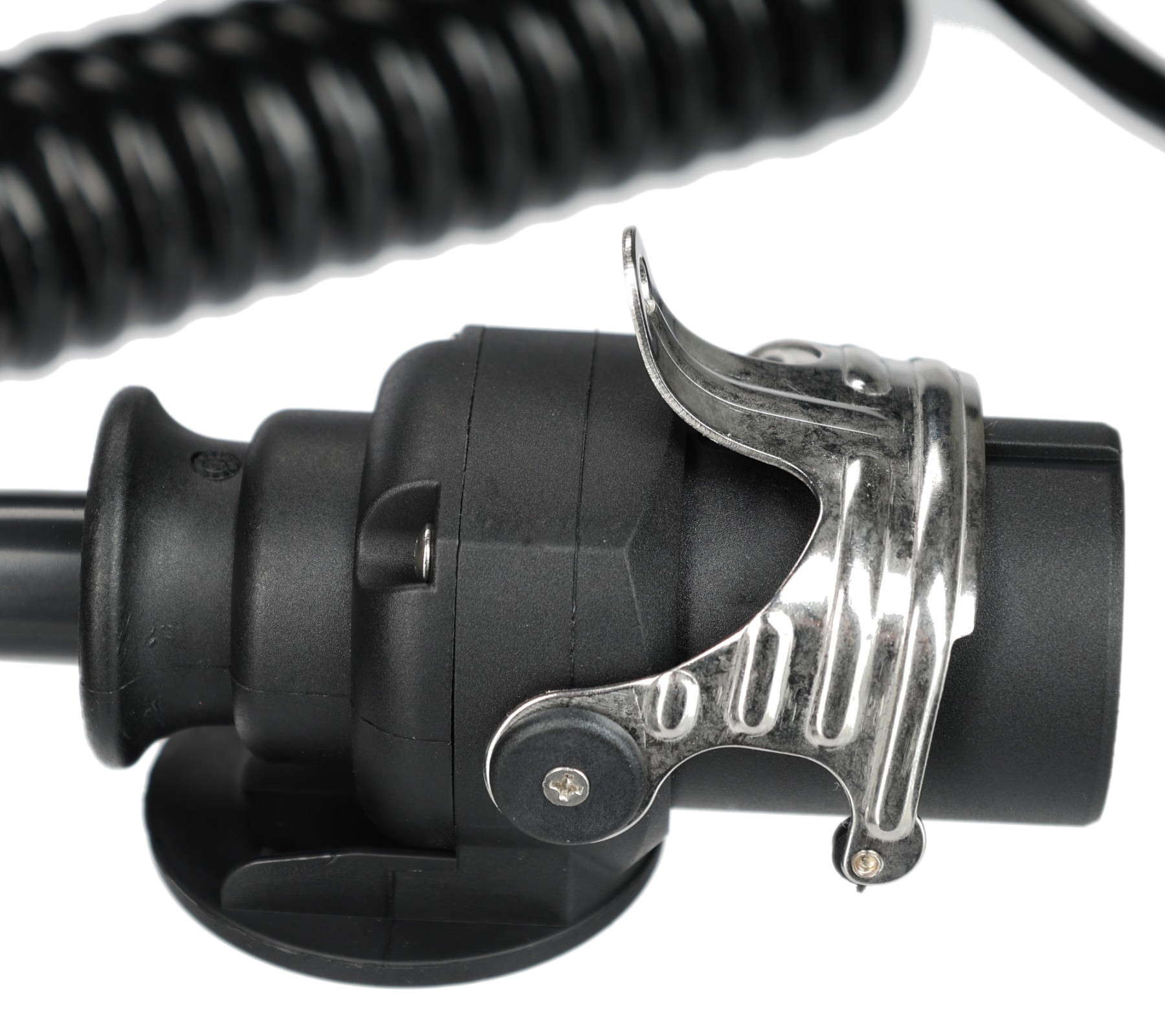 Spiralny przewód SIXTOL TRAILER CABLE 14 jest przeznaczony do przesyłania sygnałów elektronicznego systemu hamulcowego (EBS) między ciągnikiem a przyczepą w samochodach ciężarowych. Wykonanie 7-pinowe zapewnia niezawodne i stabilne połączenie kluczowych funkcji sterujących systemu hamulcowego. Przewód został zaprojektowany do systemów 24V, a jego spiralna konstrukcja umożliwia elastyczną obsługę bez zwisania, co minimalizuje ryzyko uszkodzenia podczas eksploatacji. Odporne wtyki z metalowym zabezpieczeniem gwarantują pewne mocowanie i bezpieczny kontakt nawet w trudnych warunkach. Solidna konstrukcja jest odpowiednia do codziennego używania w transporcie ciężkim.