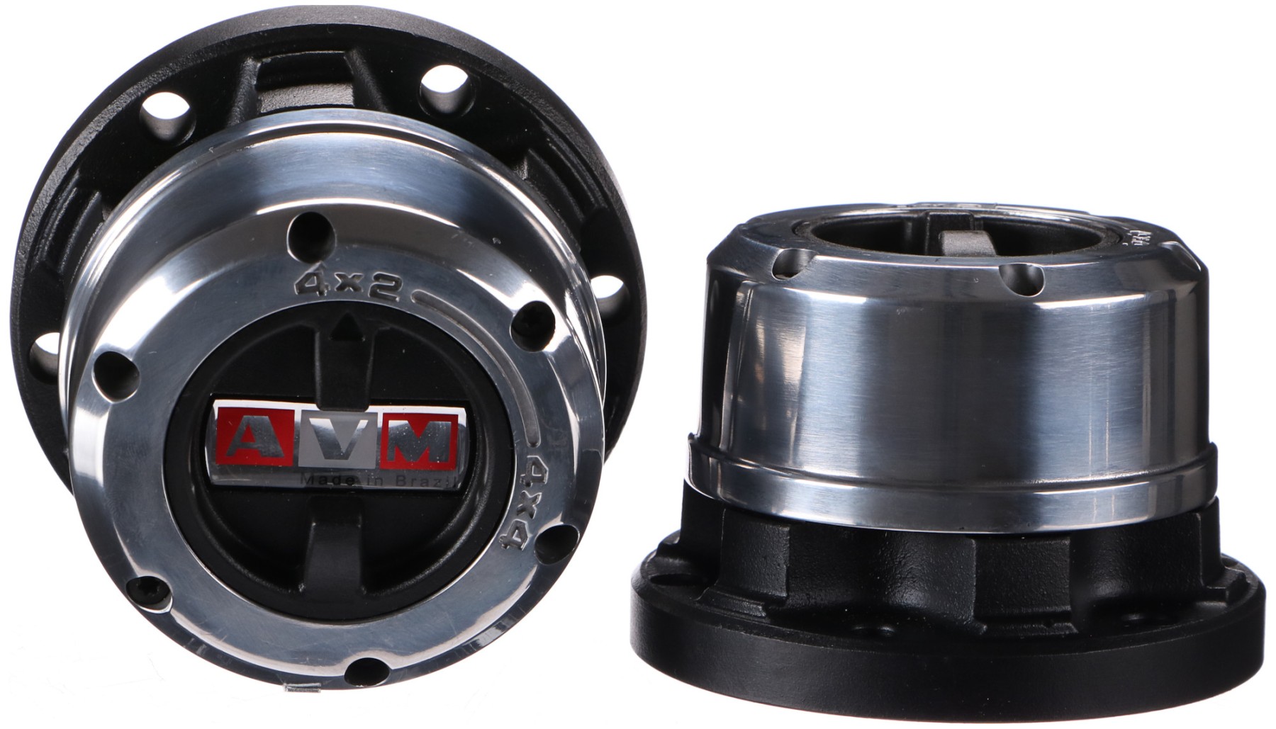 Zestaw 2 sztuk ręcznych wolnobiegów najwyższej jakości marki AVM, odpowiedni do samochodów zwykłych i terenowych. Dzięki masywnej stalowej konstrukcji i wykończeniu lakierem epoksydowym są odporne na ekstremalne warunki zewnętrzne. Wewnętrzne komponenty są precyzyjnie wykonane.