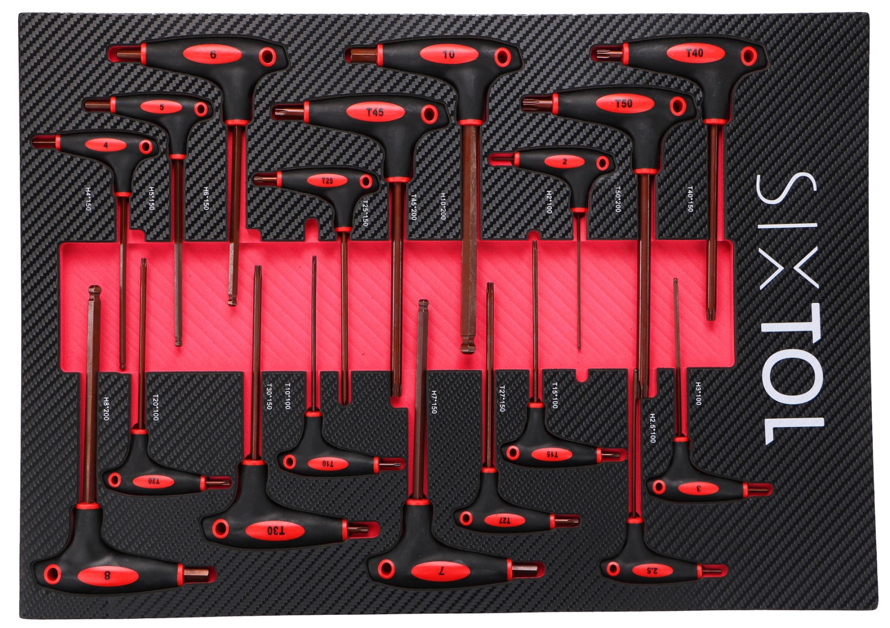 - Klucze typu T HEX (imbus): H2 × 100 mm; H2.5 × 100 mm; H3 × 100 mm; H4 × 150 mm; H5 × 150 mm; H6 × 150 mm; H7 × 150 mm; H8 × 200 mm; H10 × 200 mm- 6. Szuflada - 21x Śrubokręty ręczne (materiał 40Cr)