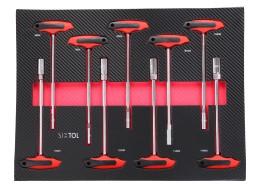 - 1x Przegub 3/8"- 6. Szuflada – 18x klucze typu T (materiał S2)