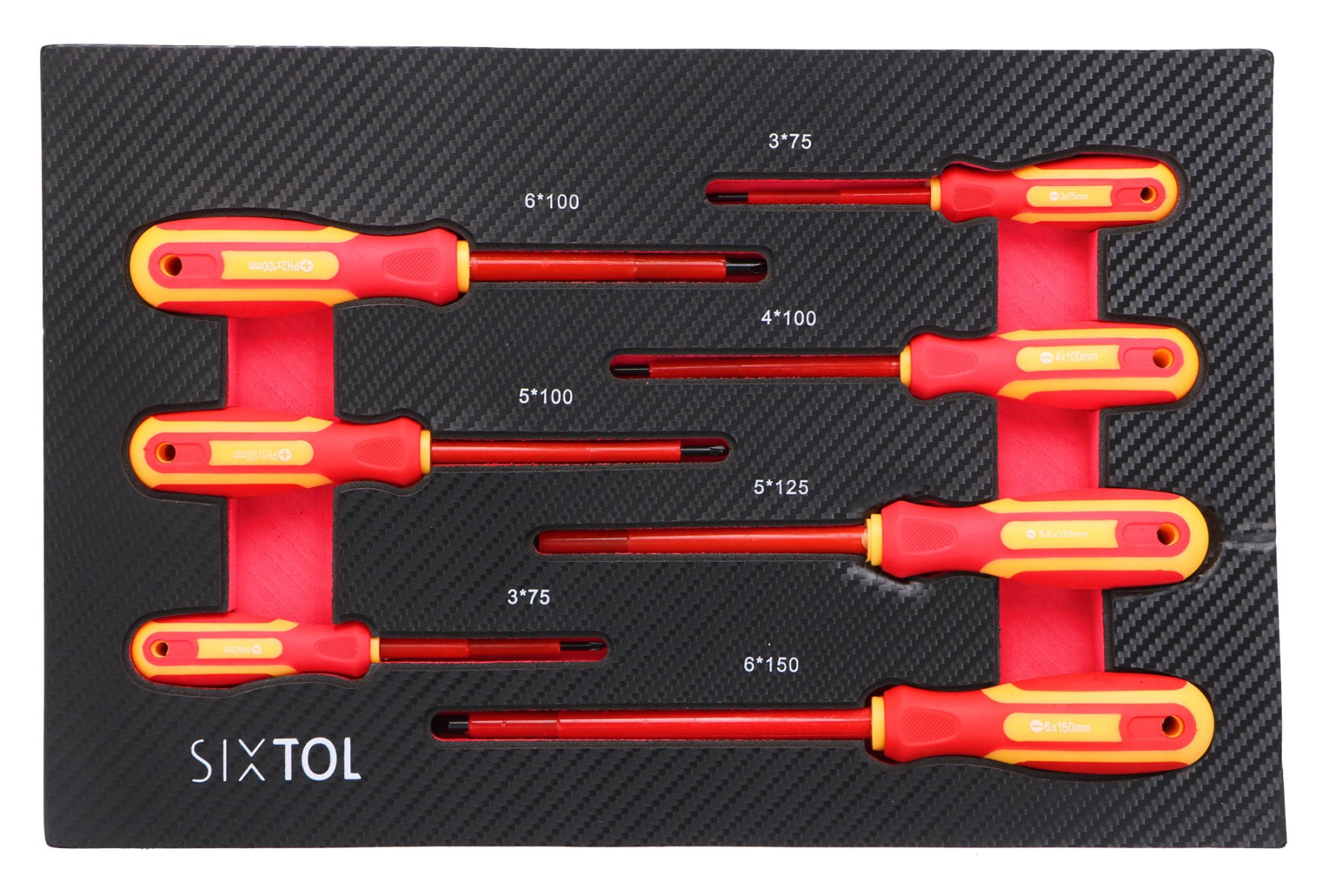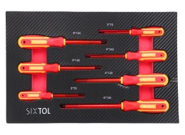 - 2x Precyzyjne śrubokręty: SL3 × 100 mm (płaski); PH0 × 100 mm (krzyżowy)- 8. Szuflada – 7x izolowane (elektryczne) śrubokręty