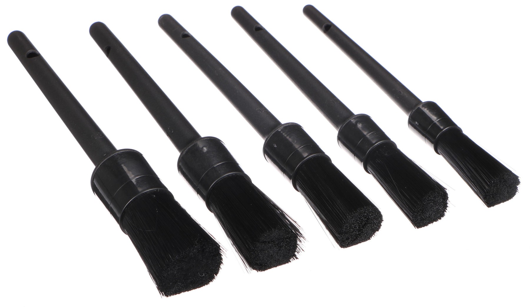 5-elementowy zestaw twardych precyzyjnych szczoteczek CAR DETAILING BRUSH 5 HARD do czyszczenia samochodu. Zestaw zawiera 5 twardych szczoteczek w różnych rozmiarach, które docierają do fałd drzwi, panelu środkowego, kratek wentylacyjnych i pomogą utrzymać samochód w czystości. Twardość szczoteczek jest oznaczona kolorystycznie - czerwone są miękkie, a czarne twarde.
